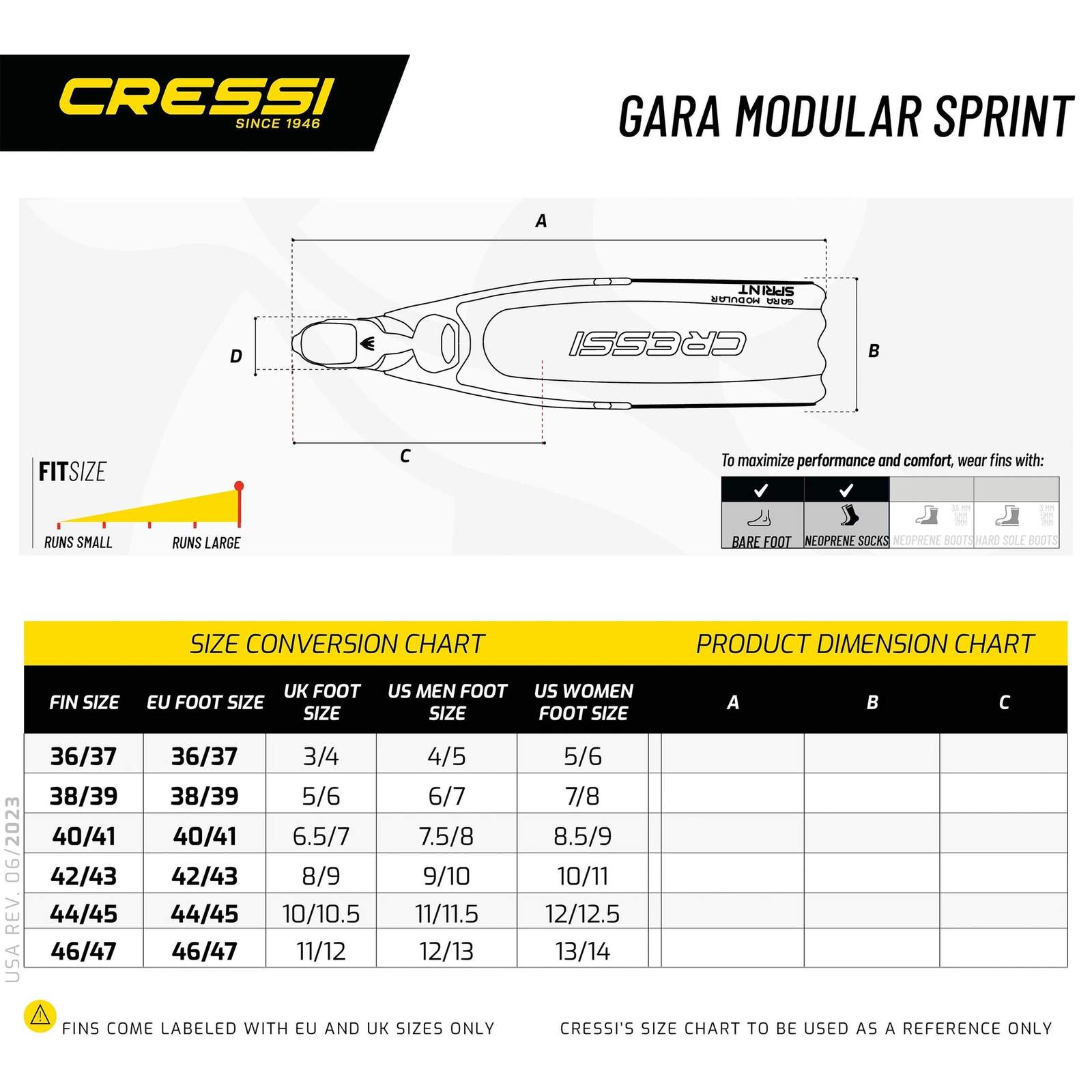 Palmes de plongée en apnée Gara Modulaire Sprint Noir EU 36-37-UK 3-4 Cressi BH085036
