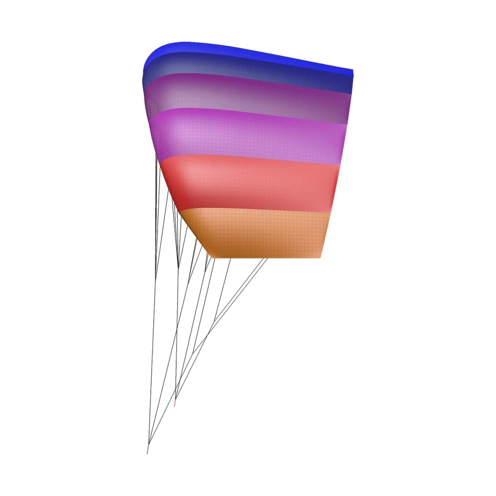 - Matériau : tissu ripstop polyester avec renforts Dacron (zones de bordures), lignes polyester (spécification 45 kg / 100 lb)