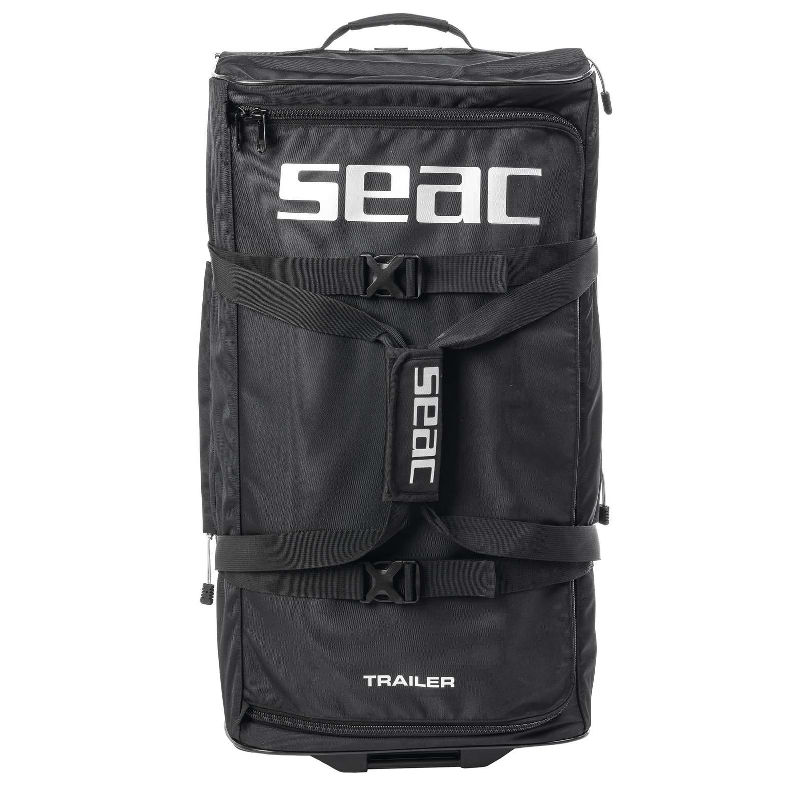 Le Chariot Remorque Noir Seac 92-32N est l'accessoire indispensable pour tous les plongeurs soucieux de transporter leur équipement en toute sécurité. Fabriqué en polyester de 1000 DEN avec un revêtement PU résistant, il offre une capacité généreuse de 110 litres, idéale pour stocker tous vos accessoires de plongée. Doté d'une structure rigide qui préserve sa forme et d'une conception anti-roulement, il garantit une stabilité optimale lors du transport. Avec un système de poches bien pensé, comprenant une poche supérieure, deux poches latérales et une poche intérieure, il permet de garder vos documents et objets personnels en ordre. Le chariot est équipé de roues en caoutchouc de grande taille pour une manœuvrabilité aisée sur tous types de terrains, tout en offrant un confort de transport grâce à sa poignée télescopique réglable en trois hauteurs. Facile à porter comme un sac de sport, il permet d'organiser votre équipement sans stress, ce qui en fait le compagnon idéal pour vos aventures sous-marines.