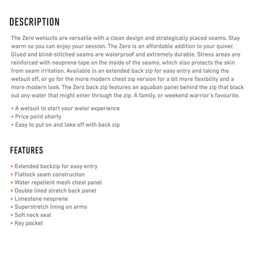 Combinaison Courte Zero Homme Zip à l'arrière 2-2 Noire Taille S RRD 27ZRBZ22S_S Description: La combinaison courte Zero Homme de RRD est conçue p...