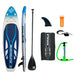 • Pack d'accessoires complet : Comprend des ailerons (3 : 2 + 1), une pagaie télescopique en aluminium, un kit de réparation, un leash et un sac de transport pour plus de commodité.